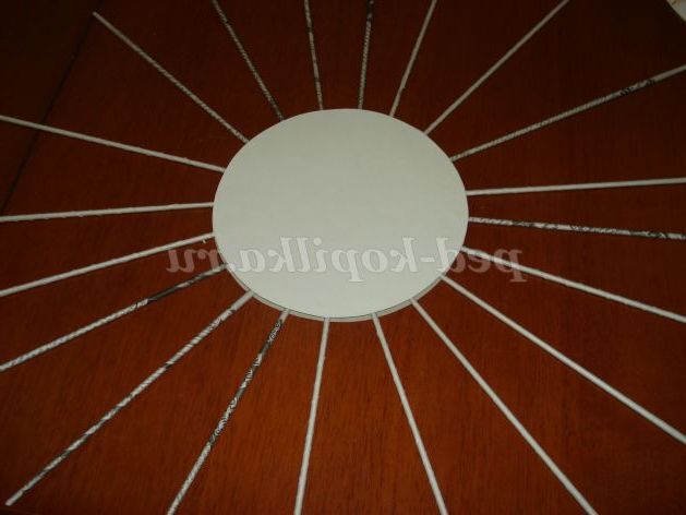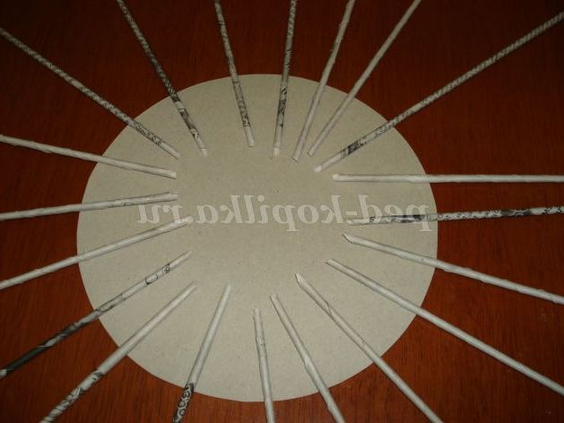 Візьмемо один круг з картону потрібного розміру і приклеїмо на нього трубочки на однаковій відстані один від одного
