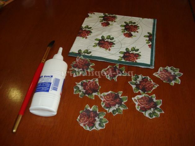 Наклеюємо акуратно, від середини до країв квіточки наносимо клей м'яким пензликом, даємо підсохнути.