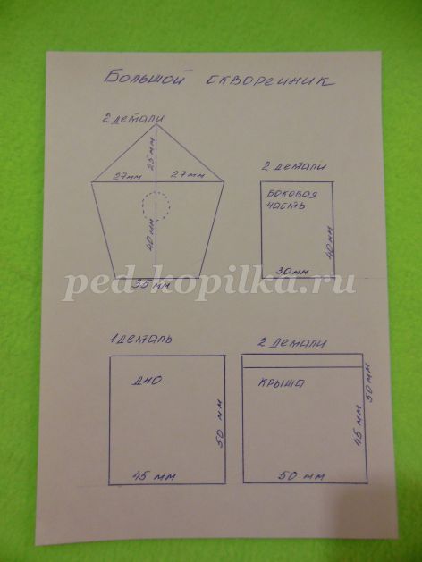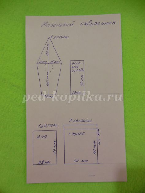 Почнемо з великого шпаківні. Для початку робимо креслення деталей.