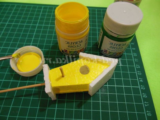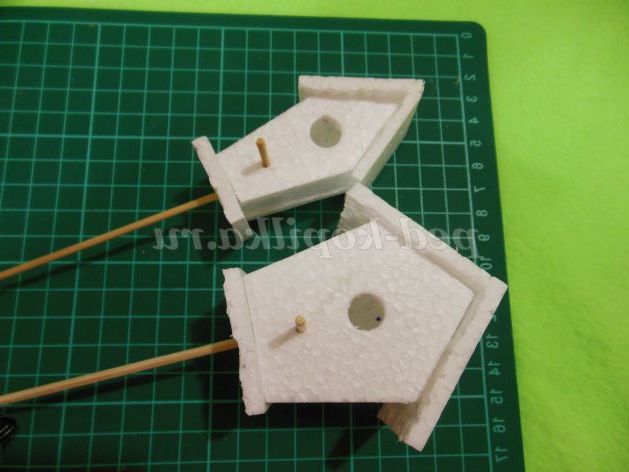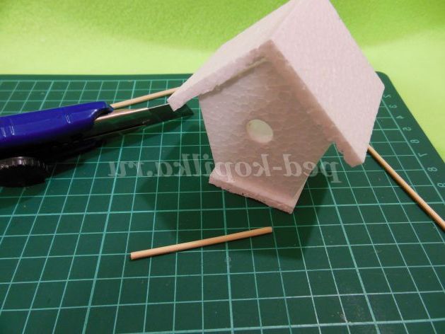 Вирізаємо з стельової плитки всі деталі канцелярським ножем, не забуваємо про отвір в передній частині шпаківні.