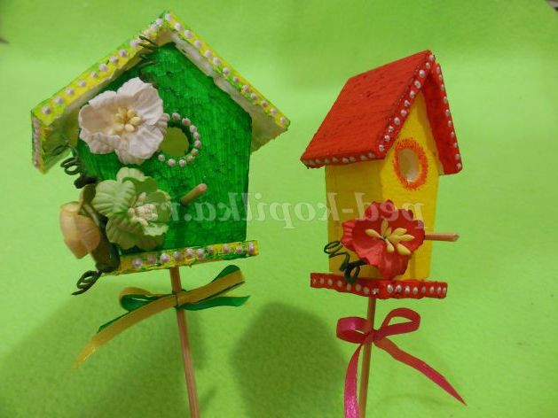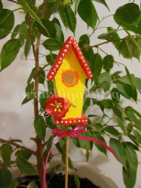 А так виглядає шпаківня, вже в квітковому кашпо.