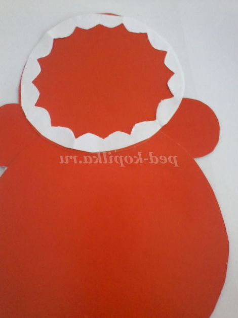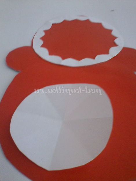Беремо другий вирізаний круг білого кольору і робимо його розміром менше зрізуючи. Це буде у нас обличчя нашої Неваляшки.
