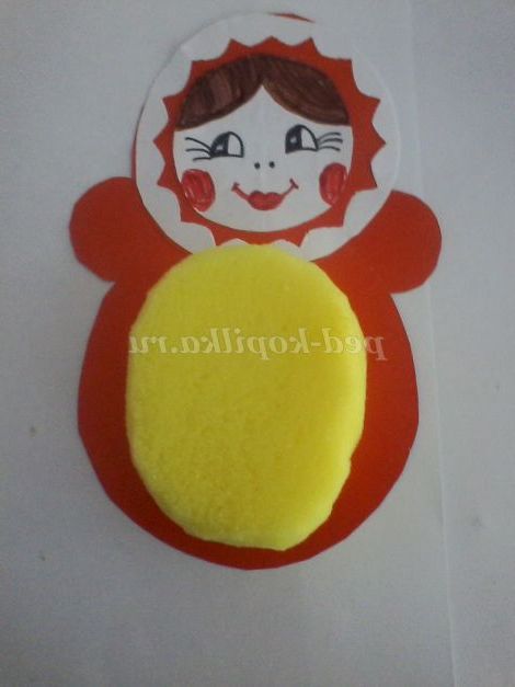 Овал з губки приклеюємо на животик нашої Неваляшки.