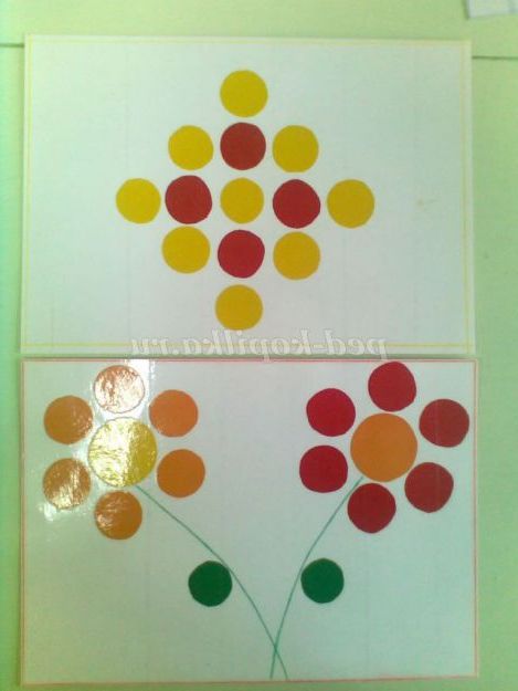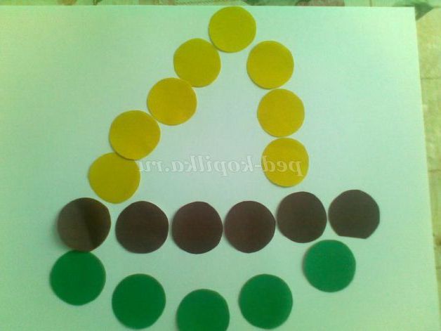 Дітям пропонуються картки з малюнком (планом - схемою) і аркуш А-4 з чистим полем. Завдання дітей скопіювати малюнок (викласти кришечки у відповідності з малюнком), для дітей молодшого віку - викласти кришечки на план - схему, дотримуючись колір і розмір кришок.
