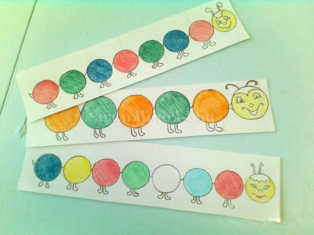 4. Складаємо товстих і тонких гусениць різного розміру кришок, довгих і коротких, потім всі разом порівнюємо.