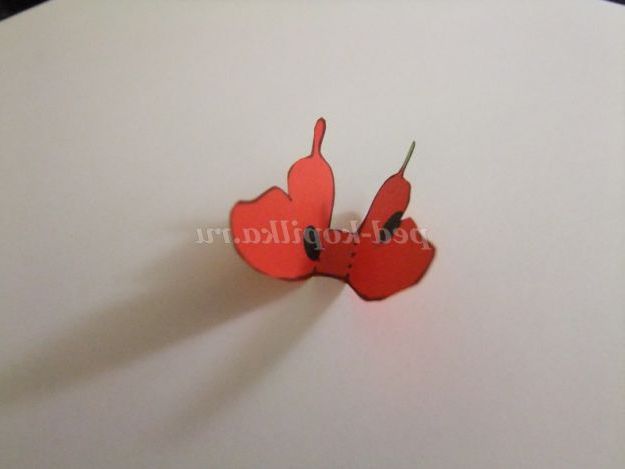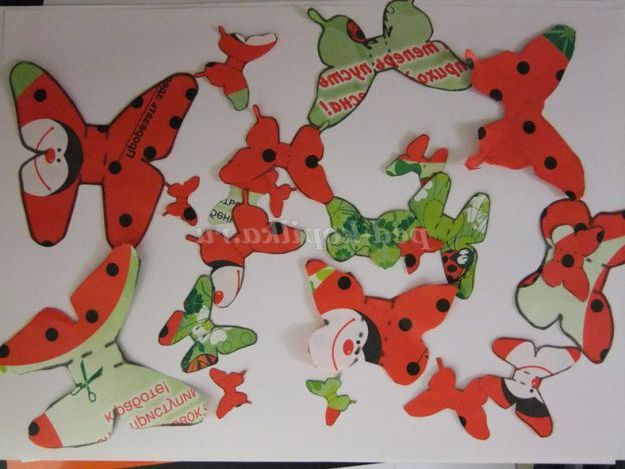 Тепер кожного метелика згинаємо по пунктирних лініях, метелики виходять об'ємними