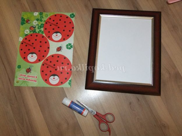 Необхідні матеріали: Фоторамка без зображення, лист з яскравого барвистого журналу, шаблон, ножиці, клей.
