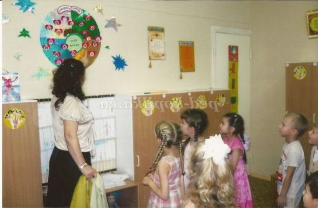 Вихователь відкриває стенд» Моя сім'я» з фотографіями дітей, вихователів, помічника вихователя групи.