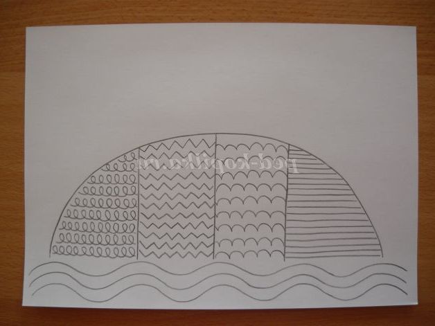 Кожна частина острова прикрашена різними лініями (прямі горизонтальні,хвилясті, ламані, "петельки", "горбки").