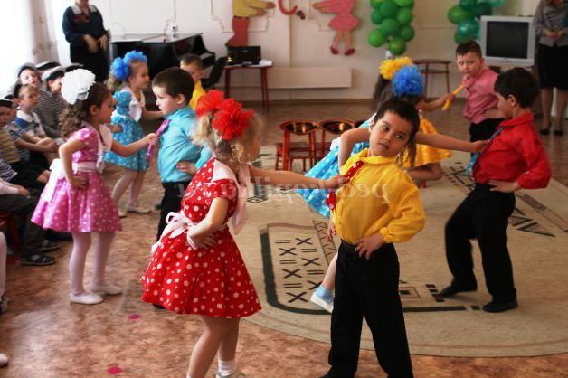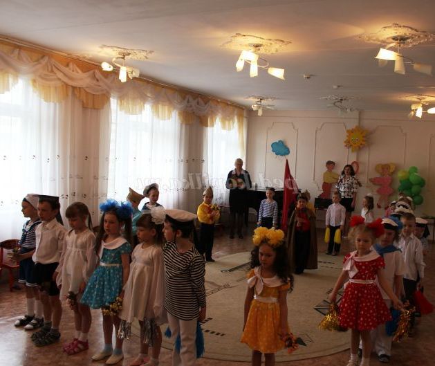 Під пісню «День Перемоги» діти входять в зал, проходять з перестроюваннями, зупиняються в центрі.