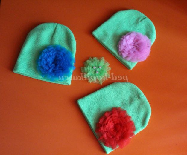 Пришиваємо квітка до потрібної Вам речі. У моєму випадку-це були дитячі шапочки.