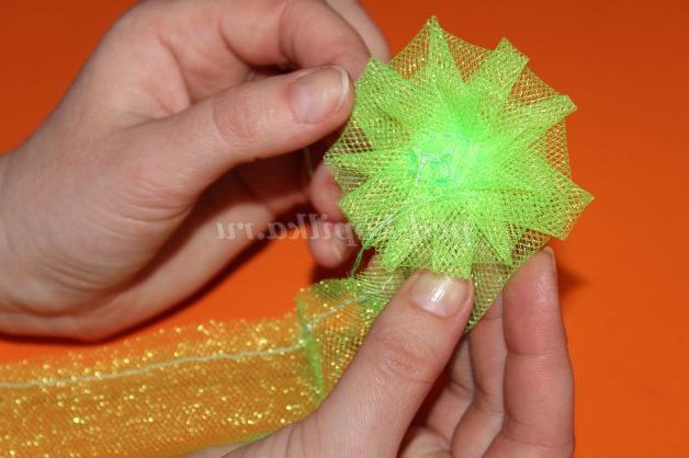 Пропоную Вашій увазі майстер-клас з виготовлення квітів з тканини-сітки.