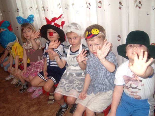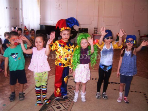1 скоморох: Сьогодні в нашій малышовской країні оголошується свято Бешкетник, і всім дітям дозволяється: перекидатися, гавкати, нявкати, верещати до упаду, реготати до почервоніння. Ура!