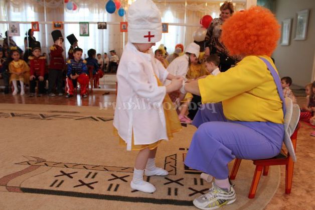 Ведучий: Так вже й бути. Медсестри, надайте допомогу пораненому.