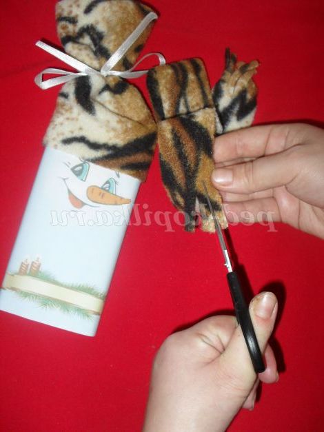 Зав'язуємо шарфик на снеговичке і наш солодкий подарунок готовий!