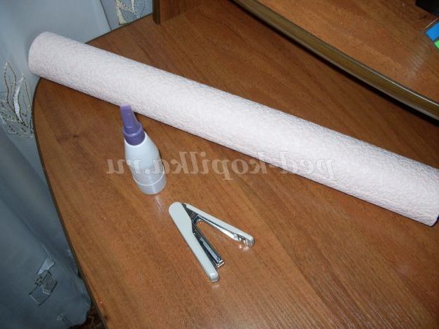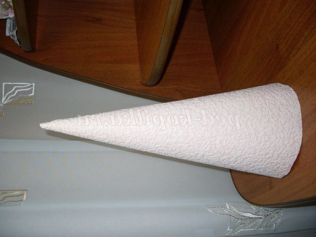 Скрутіть з нього конус, зробіть потрібну довжину з допомогою ножиць. Краю конуса склейте між собою клеєм.