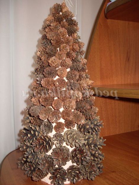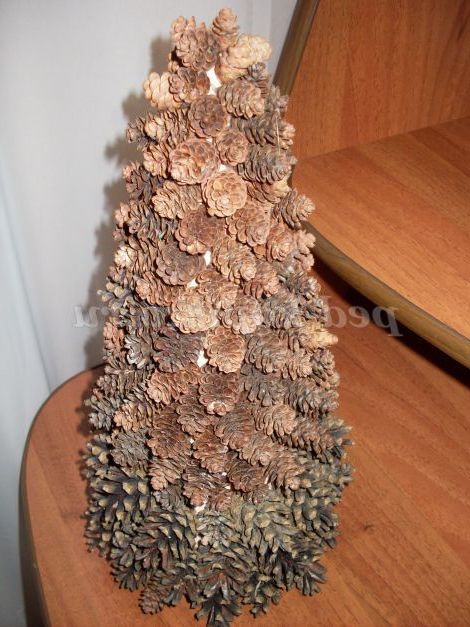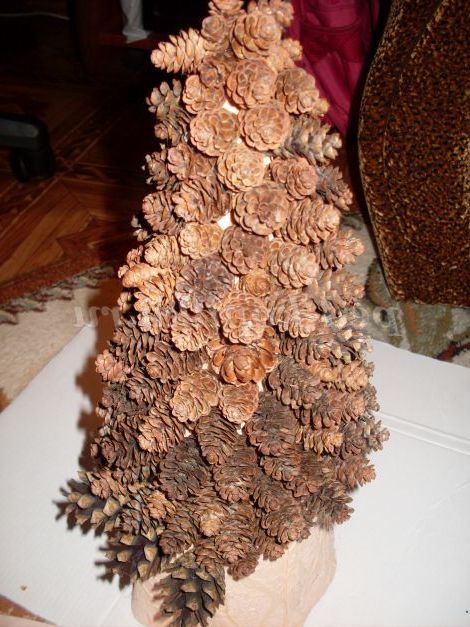 Приклейте шишки на конус, з допомогою клею пістолета.