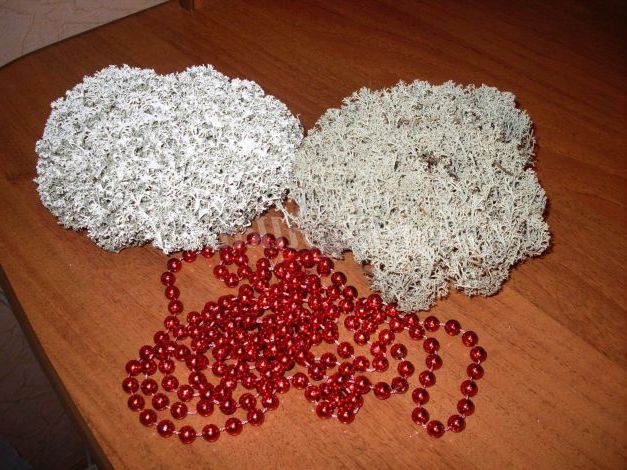 Візьміть жорсткий мох, і пофарбуйте його білою гуашшю, це додасть моху зимовий пейзаж.