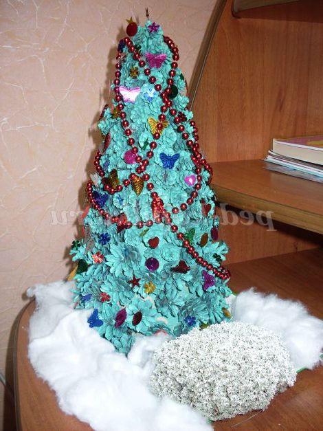 Зверху приклеюйте ялинові шишки , знизу соснові.