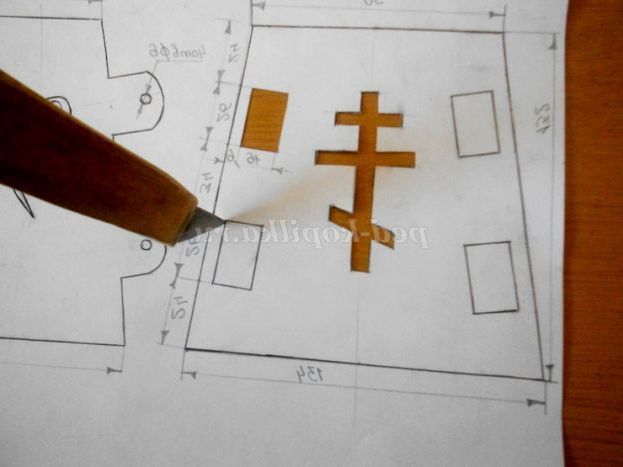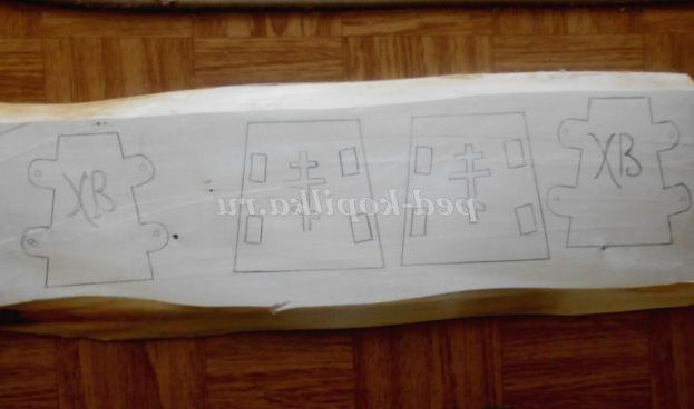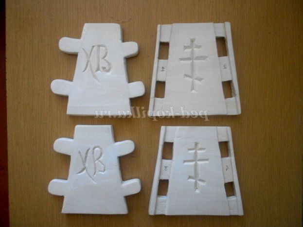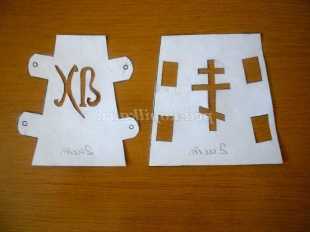 Роботу легко виконати за шаблонами. Для їх виготовлення необхідний креслення. Зображення хреста і "ХВ" наноситься в "дзеркальному відображенні"