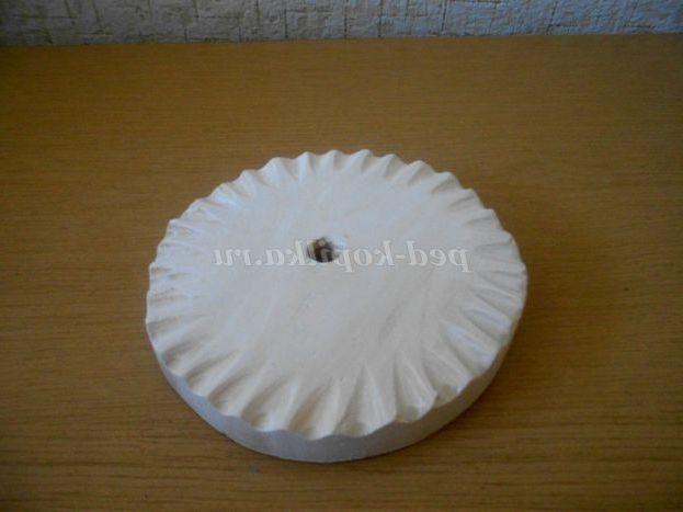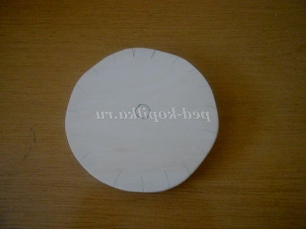 На лицьовій стороні дна-підставки зазначимо отвір для стека сирною рідини, а по краю «пустимо» промінчики.