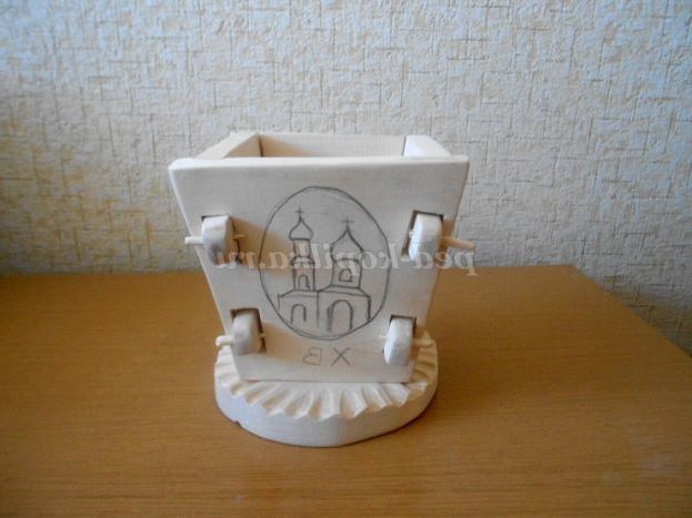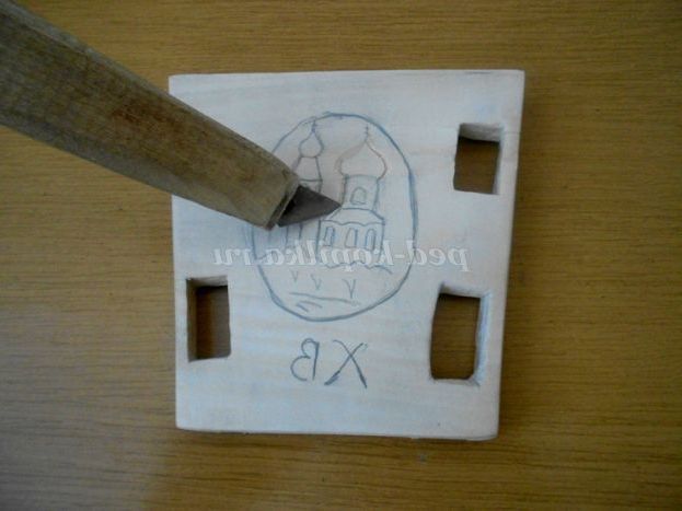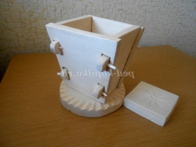 На нижній стороні дна-підставки виріжемо канавки для стека сирною рідини. На кришці зазначимо будь-який малюнок.