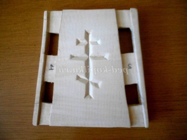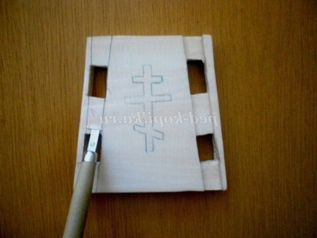Ножем-косяком виріжемо зображення хреста. Для цього по центру малюнка зробимо надріз і з нахилом ножа вліво або вправо вирізаємо канавку.