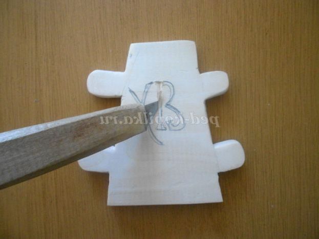 З допомогою ножа зробимо 8 кілочків під отвори.