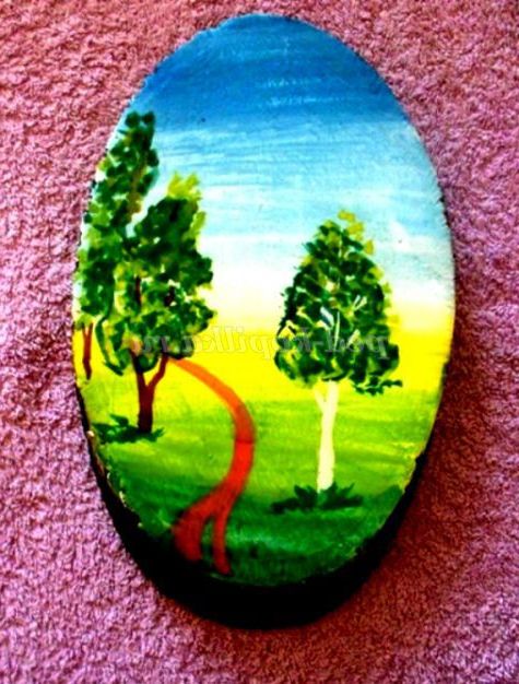 При колірному рішенні дерев використовуємо точкову живопис. Кінчиком пензля наносимо світло - зелені точки,