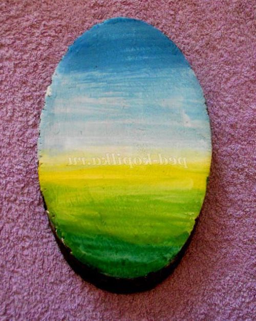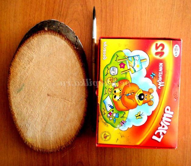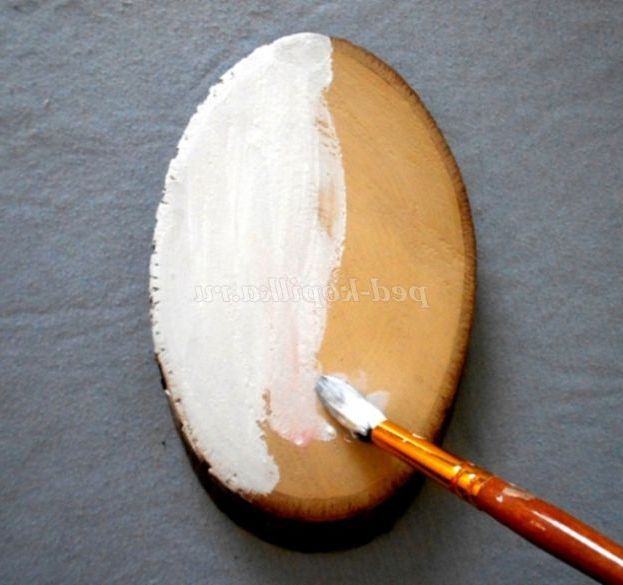 Після обробки зрізу наждачним папером покриємо білою акриловою фарбою