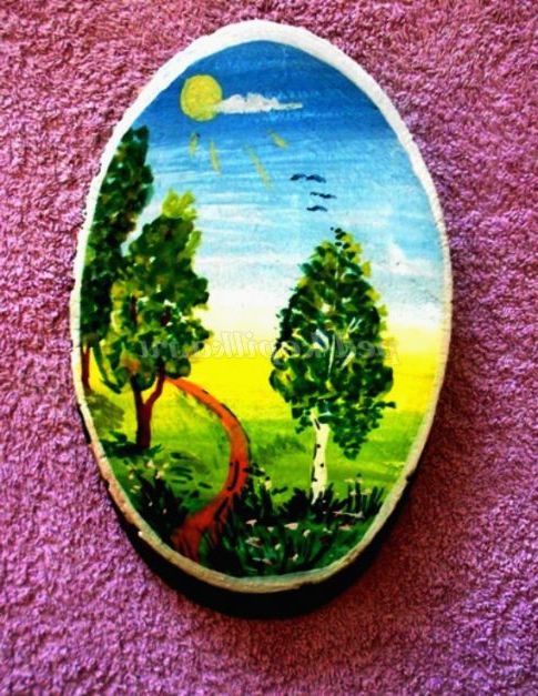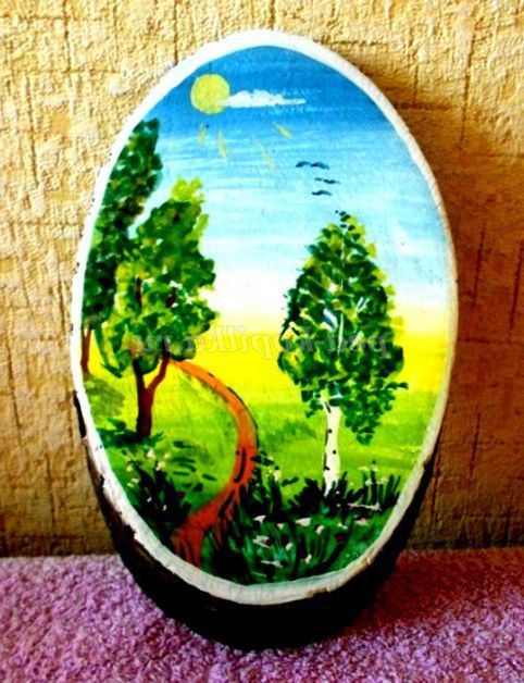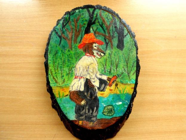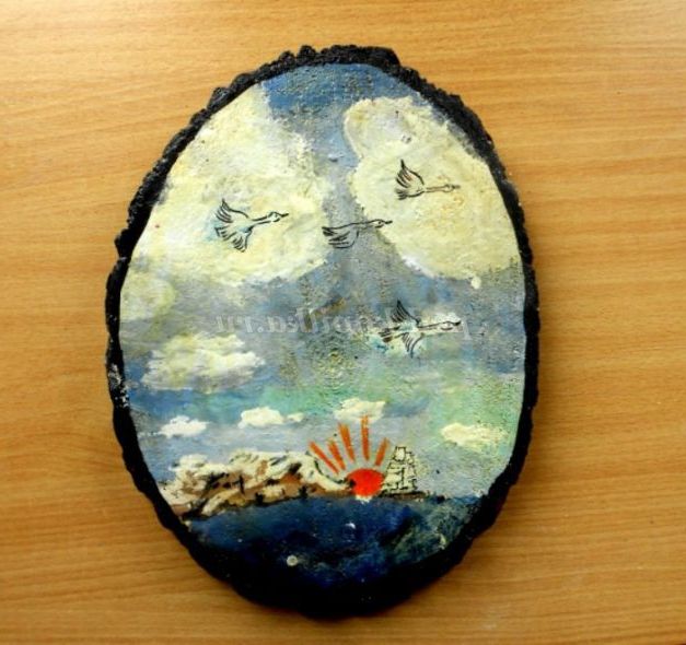 міні-картина на зрізі дерева послужить хорошим подарунком, прикрасою кімнати.