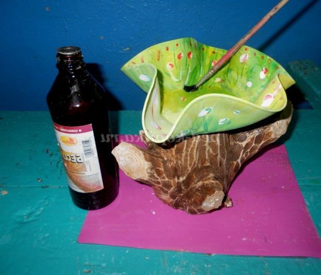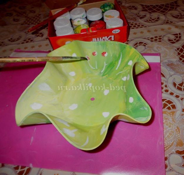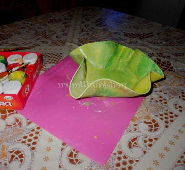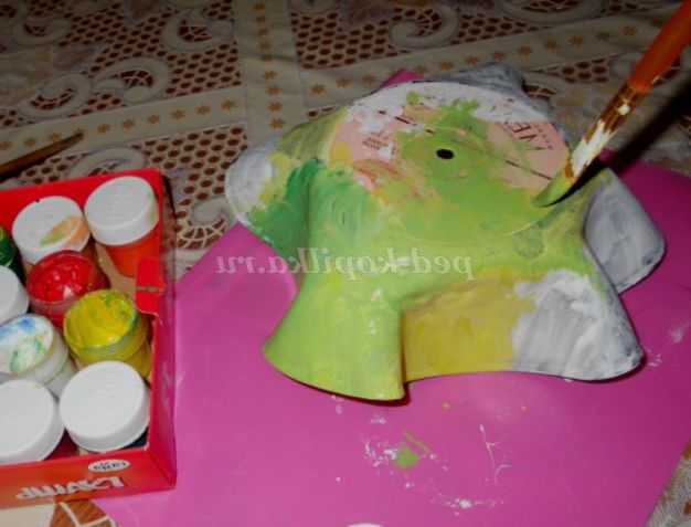 17. Попрацюємо гуашшю. Ми вибираємо жовто-зелений відтінок. Це "оживляє" нижню частину нашої вироби, перетворюючи її в "дерево".