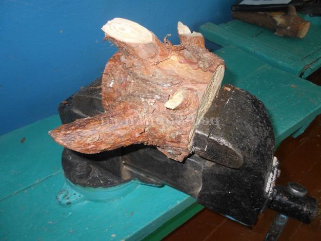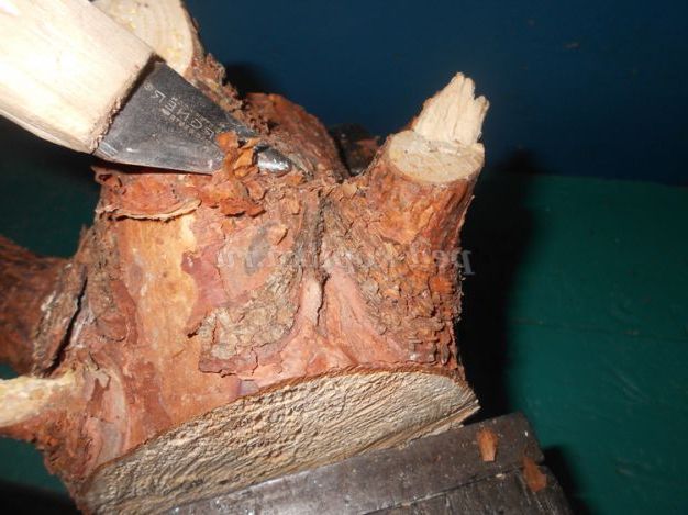 3. Очищаємо кору з деревини. Для цього застосовується гостро ріжучий інструмент, тому необхідно дотримуватися правил безпеки при роботі. Не можна тримати праву руку поблизу різального інструменту!