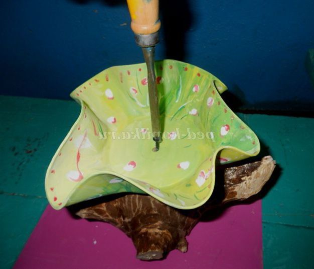 20. Приступаємо до збірки нашого виробу. Прикріплюємо тарілку до заготівлі шурупом.