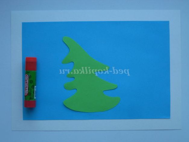 3. Наклеюємо блакитний фон на основу - акварельний лист.