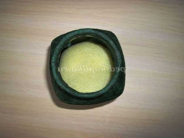 Потім в нашу ємність кладемо поролон, у нього в результаті складання повинні увійти кінці букета.