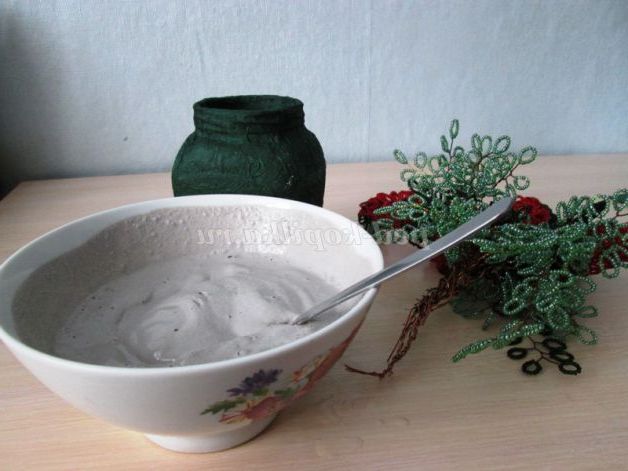 Потім розводимо гіпс. На склянку води беремо десять столових ложок з верхом гіпсу, отримуємо суміш для заливки.