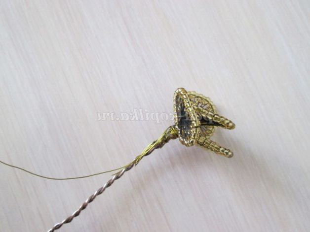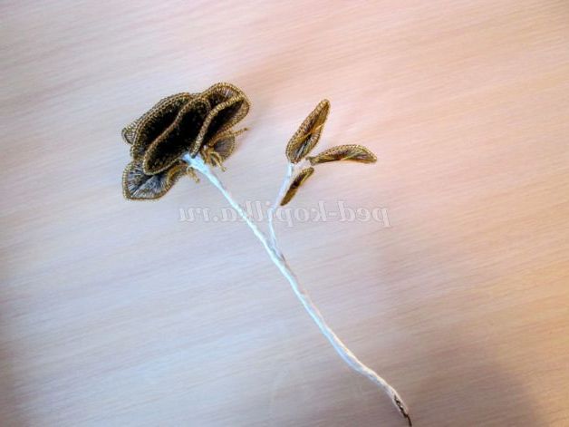 Можна додатково зробити чашолистки з дроту і бісеру без нитки і закріпити їх так, як показано на фотографії.