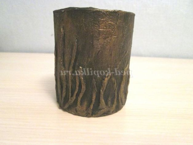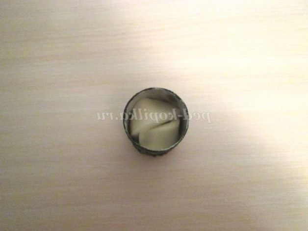 Після підсушування скрутимо стрічки з серветки в травинки і приклеїмо їх знизу на нашу баночку. Потім зверху наклеїв ще один шар серветки.