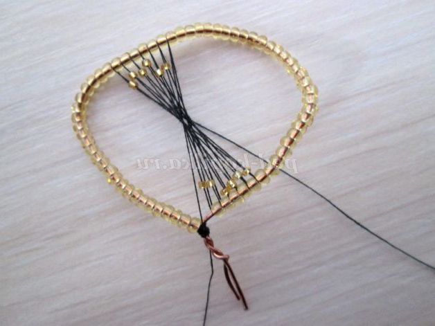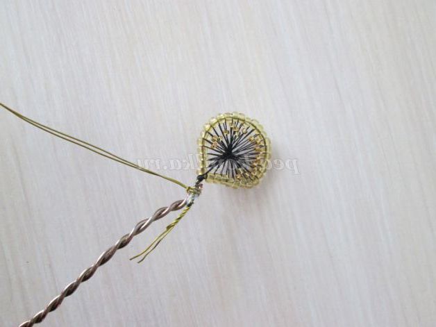При обмотування одночасно будемо розподіляти бісер на площині пелюстки.