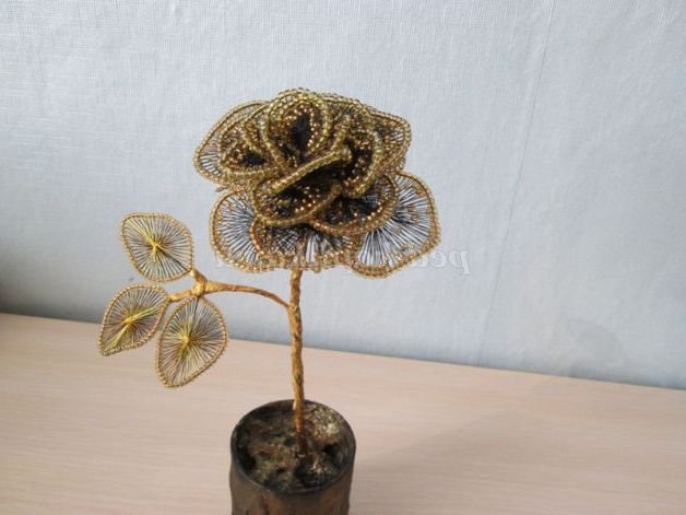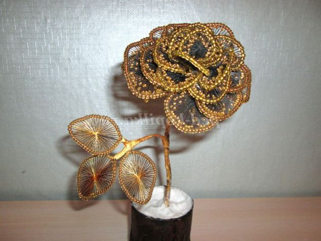 Майстер-клас «Золота роза» у техніці бісерної ганутели.