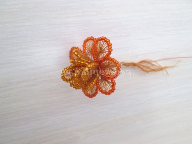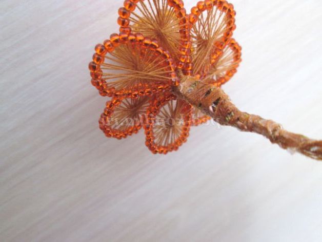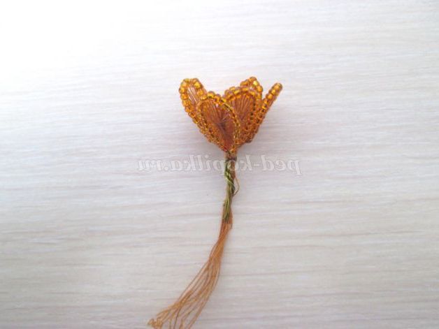 Тепер нитками прикрутимо до стебла зовнішні оранжеві пелюстки і промаж стебло клеєм (будь-яким).