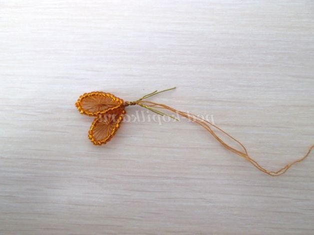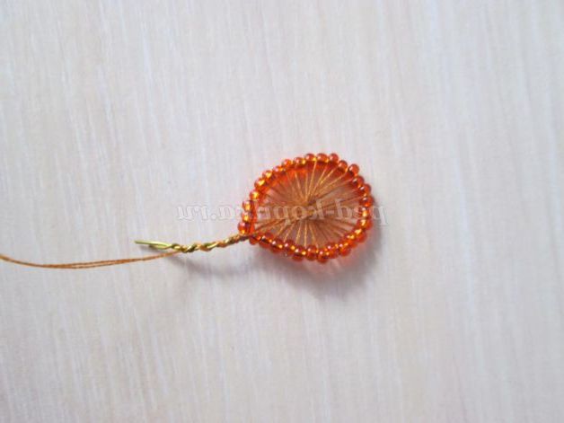 Потім швейними нитками оранжево-коричневого відтінку зробимо намотування, як показано на наступних фотографіях.