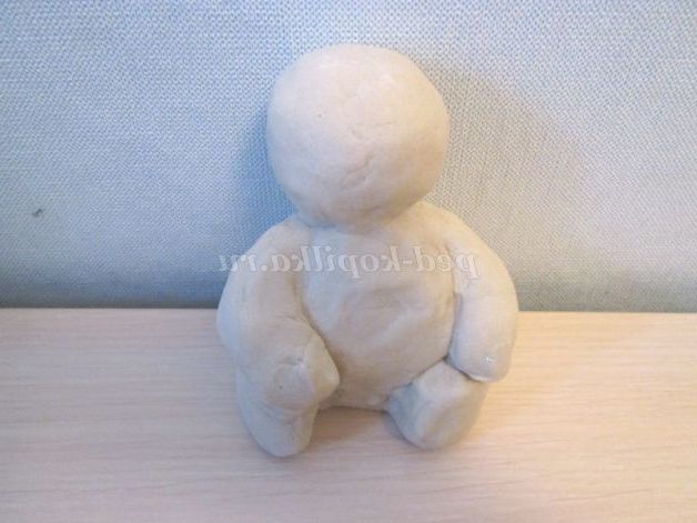 Тепер виліпив вушка і ніс, на місці очей і рота пальцем зробимо поглиблення.
