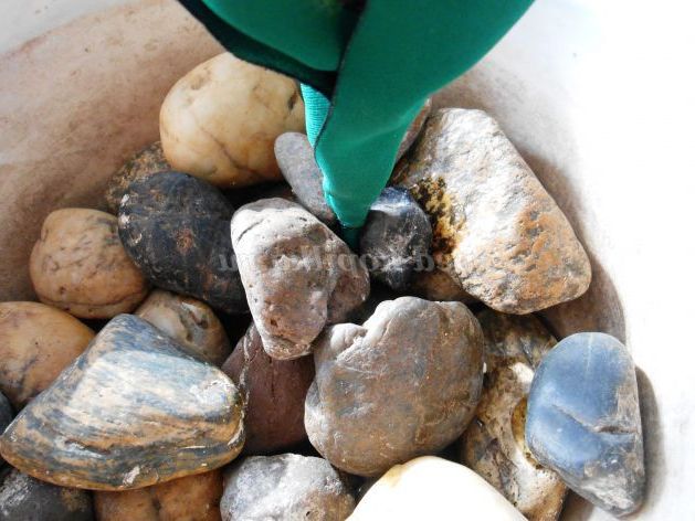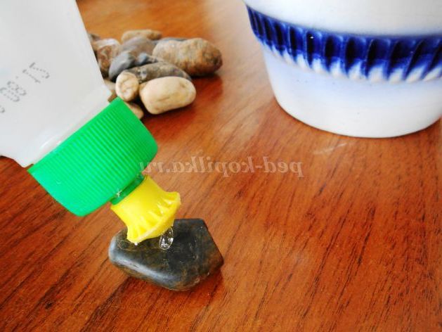 33. Приклеїмо річкову гальку на дно квіткового горщика. Ось так