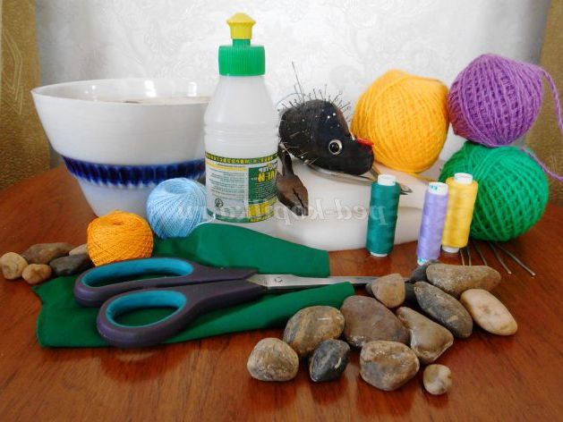 32. Залишилося тільки висадити гіацинти в квітковий горщик. Для цього нам необхідно приготувати «землю». Річкова галька з успіхом замінить нам цей матеріал. На одну із сторін річкової гальки нанесемо майстер-клей