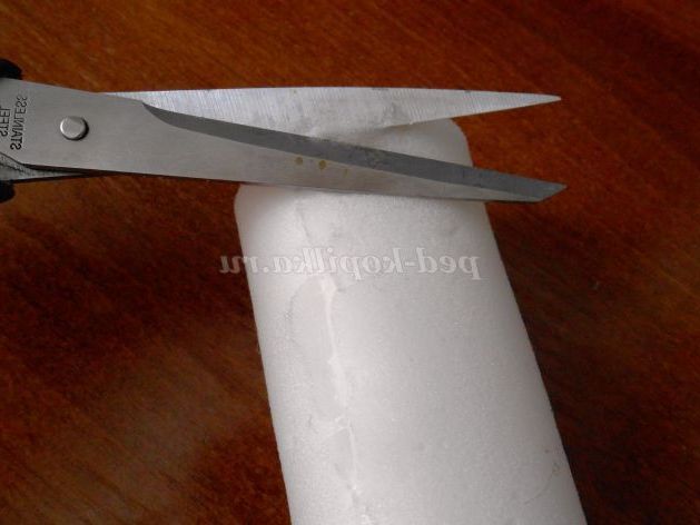 5. Верхній край заготовки зріжемо по колу ножицями, розташувавши леза щодо заготовки, під кутом
