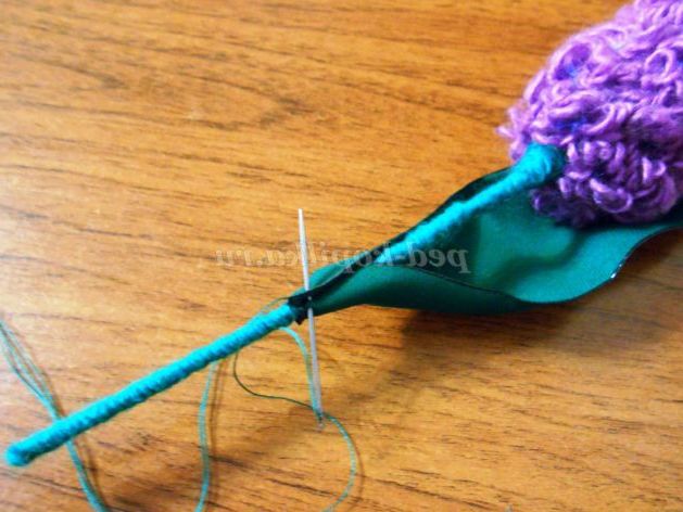 22. Зайву дріт обрізаємо кусачками, і обвиває пряжею весь «стебло» по спіралі, не доходячи до нижнього краю «стебла» на 1 см
