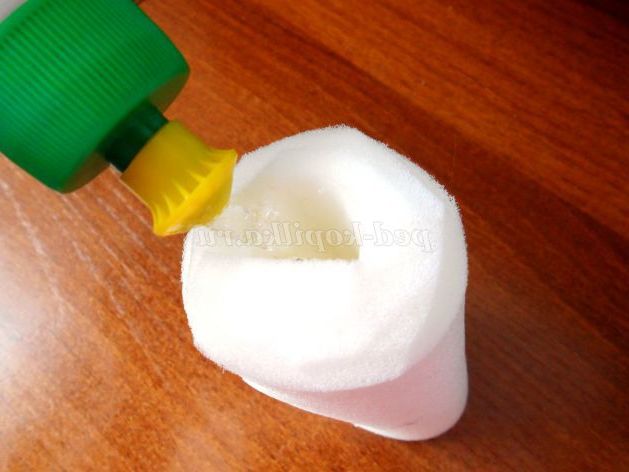 2. На торці поролоновою заготовки нанесемо точково майстер-клей