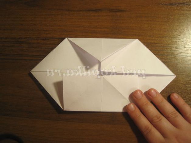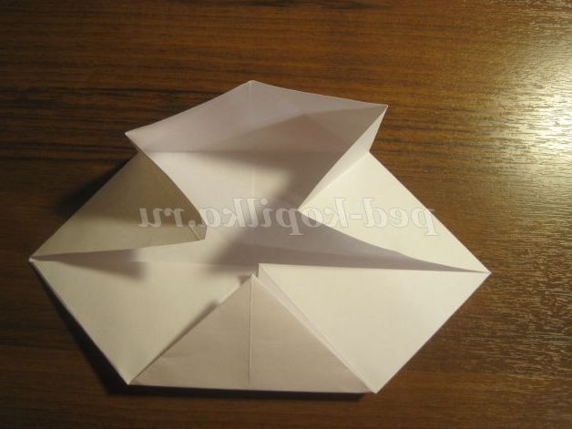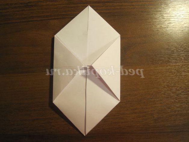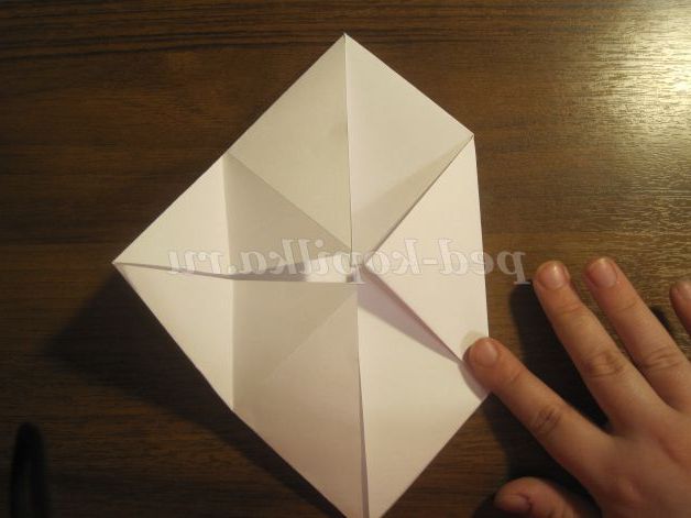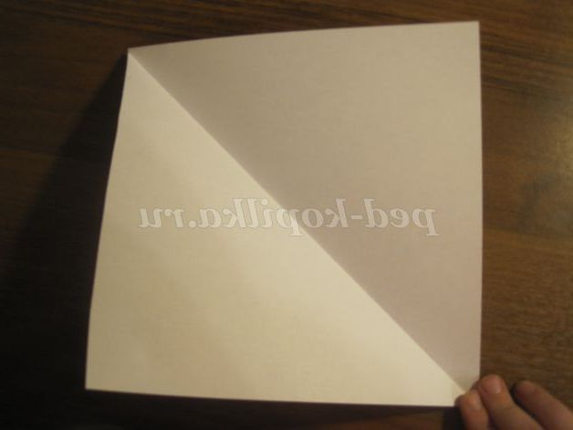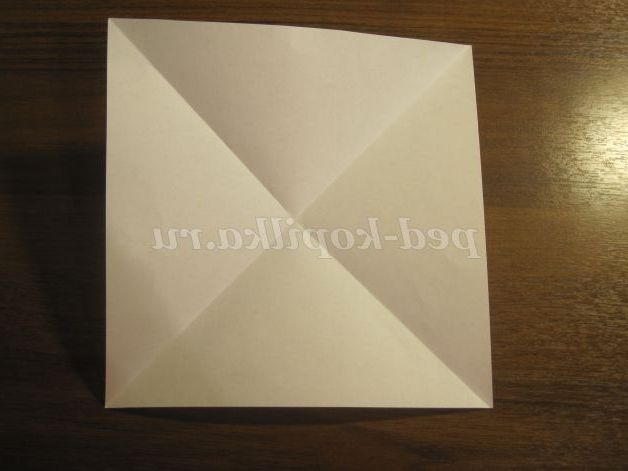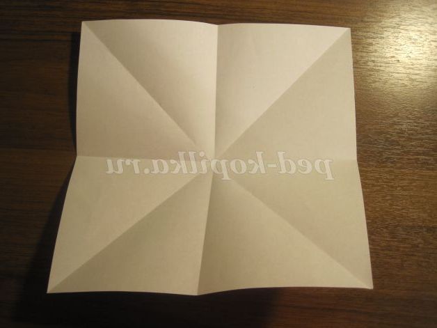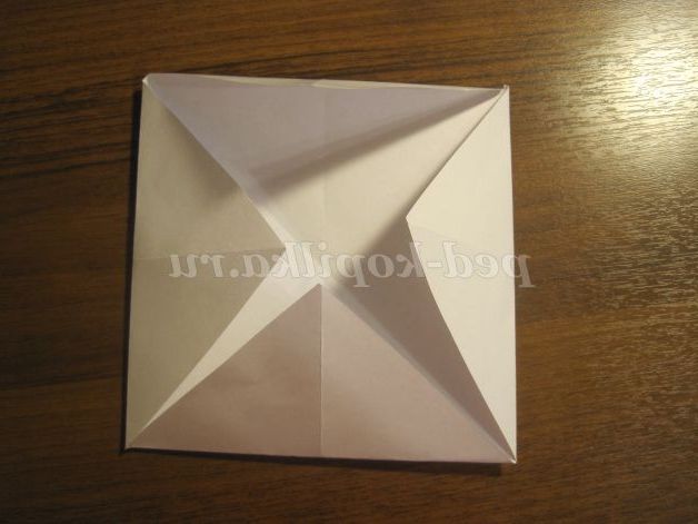 Потім кути загинаємо до центру. Отримуємо ось такий квадрат:
